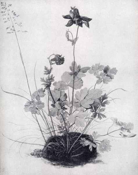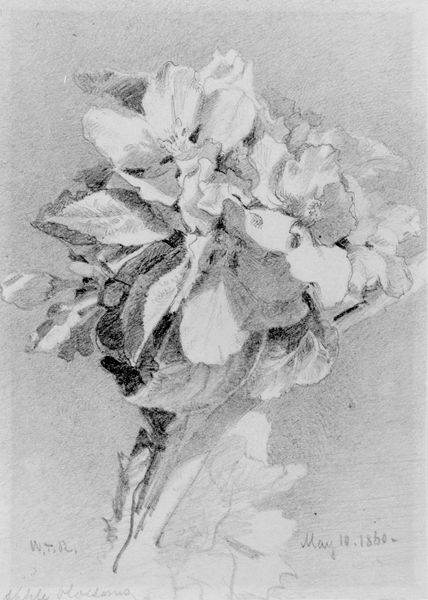 Curator: Welcome. Today we’re looking at "Bellflower," a drawing attributed to the Hokusai School, dating roughly between 1800 and 1868. It’s rendered in ink and currently held here at The Met. Editor: The first impression I get is one of such stillness. It's quiet, almost melancholic. The flowers seem heavy. Curator: Absolutely. Let’s delve into that "weight." Notice the meticulous inkwork— the controlled brushstrokes creating the petals' textures and the varying densities that give depth. These gradations in tone aren't accidental; they reflect the craftsman's mastery. What's significant to me is that Ukiyo-e wasn't just some detached art form but a means of production that linked artists and their workshops to society’s consumer demands. Editor: I am struck by these flowers themselves—Bellflowers often symbolize gratitude and honesty in the Victorian language of flowers, but in Japanese culture, do they hold a particular significance? It seems to represent not just the aesthetic appreciation of nature, but perhaps some moral reflection of the values or even impermanence of things, considering the flowers’ brief lifespan and how they eventually wilt. Curator: A relevant interpretation, however, remember this piece may have been intended for wider reproduction as opposed to direct consumption as ‘high art’— mass production, via printing methods for example, shifted the intent towards widespread consumption in the booming economies and markets. That fundamentally recontextualizes the symbolism somewhat. The flowers themselves become part of that overall material process. Editor: I agree, although it appears quite meditative at first glance. But even appreciating that context, you see this contrast of detailed portrayal set against such empty space…the bellflowers retain cultural power as an enduring motif of beauty but maybe, as you mention, not purely. Curator: Exactly. Its simplicity masks the complex socio-economic reality of its making. The piece is, itself, part of an evolving exchange relationship – an act of economic activity in many ways as much as of pure artistry. Editor: So perhaps instead of a wistful mood, we find it speaks volumes about social values in this particular manufacturing time period. Thank you. Curator: Thank you; a crucial reminder that cultural context shapes our understanding of aesthetics.