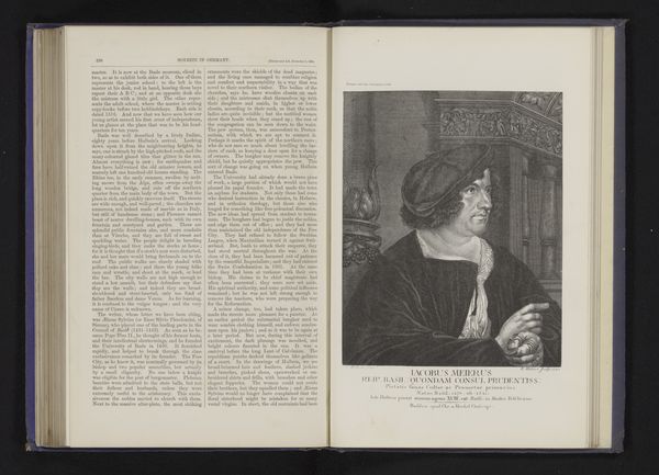 Curator: Let’s spend a few moments with this intriguing piece, a photographic reproduction of Albrecht Dürer’s portrait of Willibald Pirckheimer. The original engraving dates to 1524, but this photo was produced before 1870 and it currently resides here at the Rijksmuseum. What are your initial thoughts? Editor: My immediate reaction is to the figure's presence. He exudes an undeniable confidence, yet his eyes seem weighed down by some unseen burden. It’s an interesting dichotomy. Curator: Pirckheimer, a prominent Nuremberg humanist and a close friend of Dürer, clearly held a position of influence. Dürer masterfully captures the intellectual gravitas of his friend. Consider how printmaking disseminated images, shaping public perception in ways previously unimaginable. Editor: Exactly. And by centering on the male intellectual, the artwork is rooted in its own social constructs: we get a strong sense of Renaissance ideals, but one cannot ignore how the imagery reflects prevailing biases and exclusivity of the time, mainly focusing on men as scholars. How might Dürer’s representation of other figures differ? Curator: A vital point. Examining Dürer’s portraits of women or working-class individuals reveals a very different approach. This portrait isn't just about Pirckheimer; it is about projecting an ideal of erudite masculinity—it makes one wonder: how complicit was Dürer in shaping the image of the ideal man for his contemporaries? Editor: Absolutely, and thinking of the materiality of the print. It provided increased accessibility, although undoubtedly restricted by class and literacy. How does that affect our contemporary consumption, looking at the photographic reproduction of an original print displayed today in a museum setting? Curator: We're layered within systems of reproductions, adding meaning to the various iterations that transmit this work to new publics. And this in itself forms another kind of narrative about value, prestige, and influence. Editor: A fascinating and necessary reminder to question not just what we see, but also the historical and socio-political context in which images are constructed and consumed. Curator: Indeed. Dürer’s portrait of Pirckheimer is far more than just an image of one man; it reflects the intellectual, social, and artistic currents of its time, compelling us to consider it from a multiplicity of vantage points.