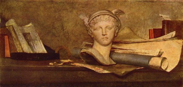 Editor: Here we have Rembrandt van Rijn's "Alexander the Great", an oil painting from 1655. I'm struck by the muted palette, it creates a somber and almost reflective mood. What strikes you first when you look at it? Curator: My focus immediately shifts to the interplay of light and shadow. Observe how the light delicately touches the crest of the helmet, emphasizing its contours, and subsequently, how it creates an interplay of reflections upon the metal surfaces. Rembrandt uses light as a structuring element, drawing attention to certain forms while receding others into the darkness. Do you perceive a pattern of repetition that is not thematic or representative, but inherent in its materiality? Editor: I think I see what you mean; how the curves and reflective qualities of the helmet are mirrored in other elements? It’s like the light creates a language all its own. Curator: Precisely! Further contemplation reveals that Rembrandt eschews overt symbolism, or historical grandstanding. His attention to material substance directs our gaze instead towards his artistry itself. This allows the work to resonate not as historical fiction, but as a demonstration of artifice in rendering lifelike qualities. What sort of emotional impact does this structure engender for you? Editor: It makes it more immediate somehow. I was initially expecting a grand statement but now it seems much more about the act of painting itself and less about historical depiction. I appreciate you guiding me to view the work in this light; it has revealed layers of complexity that I wouldn't have noticed on my own. Curator: And, in turn, your initial response illuminates the way emotional impact works and suggests avenues to examine more subtle structures in artworks moving forward.