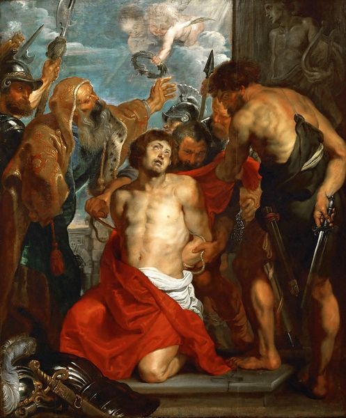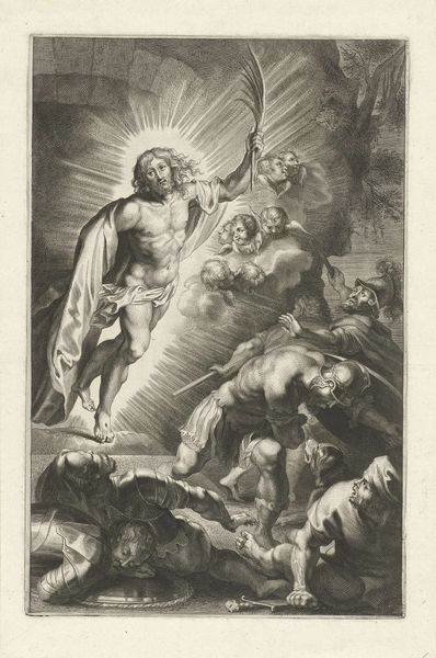 Peter Paul Rubens painted "The Resurrection of Christ" during the Baroque period, a time of religious and political intensity that shaped artistic expression. Rubens, as a leading figure in the Catholic artistic movement, uses his canvas to explore power, triumph, and the divine. The painting pulsates with the drama and emotion characteristic of its time. Christ emerges, radiant and triumphant, his figure dramatically lit against a backdrop of chaos and defeated Roman soldiers. Rubens masterfully weaves together the themes of victory and vulnerability, portraying a resurrected Christ who is both powerful and human. The fallen soldiers at the bottom of the painting highlight class dynamics and the subjugation of earthly power before the divine. Rubens' work invites us to reflect on the nature of belief, power, and the human condition. The painting remains a testament to faith's ability to inspire both awe and profound contemplation.