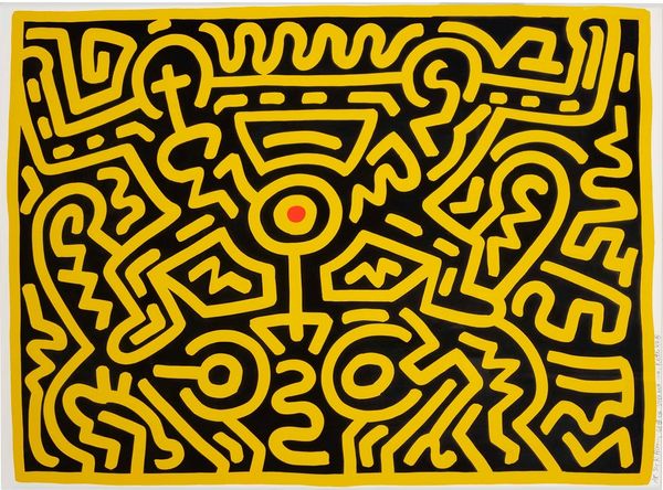 American Indian Theme IV is one of a series of six prints rooted in Lichtenstein’s appreciation of Native American art. They were partially stimulated by his experiences in Southampton, NY during the late 1970s when he and his wife Dorothy resided near a Shinnecock Indian reservation. Combining loose references to indigenous artefacts with a visual style inspired by contemporary printed material these prints combine two otherwise disparate facets of American culture. Gallery label, April 2008