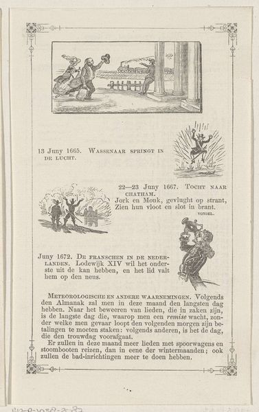 This print by Friedrich Robert Prinz depicts various historical events associated with the month of May. Notice the curious image of animals holding flags and shaking hands. This recalls the ancient bestiary tradition, where animals embody human characteristics, a motif that stretches back to Aesop's fables and beyond. The use of animal figures, especially in political contexts, echoes through history—think of medieval tapestries where animals represent virtues and vices. Here, these figures engage our subconscious, evoking feelings of trust, betrayal, and the often absurd nature of political alliances. The handshake itself, a symbol of peace and agreement, gains an almost theatrical quality when performed by animal figures. It reminds us that symbols are never fixed, evolving and adapting, resurfacing in unexpected forms. This cyclical progression highlights the enduring power of images to reflect and shape our understanding of history.