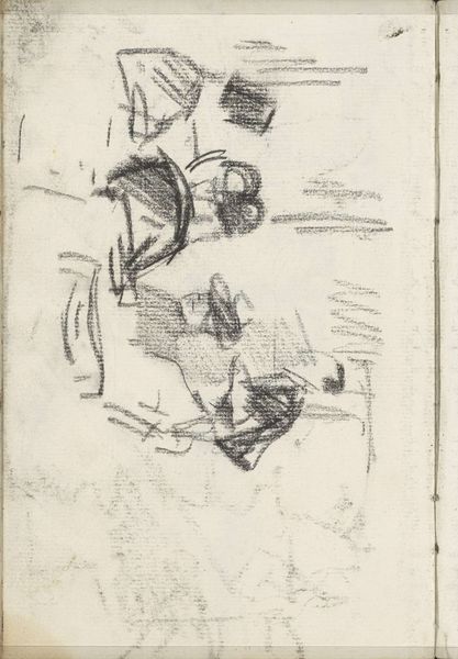Curator: Breitner's "Paard met tuig, mogelijk in een stal," likely from the 1914s, drawn in pencil and graphite, presents an interesting subject for discussion here at the Rijksmuseum. Editor: There's something quite poignant about its incompleteness, wouldn’t you say? Almost melancholic with its grayscale. A solitary horse. It really leans into a quiet intimacy, like a fleeting glimpse into a very private moment of labor. Curator: Indeed, the unfinished nature does contribute to its atmosphere, highlighting Breitner's impressionistic style. Considering that era, we see shifts in labor rights and treatment of animals—drawing attention to the conditions and relationships of working horses during significant industrial changes is very revealing. Editor: Absolutely. The bridle gear—almost a symbol of servitude—it’s crudely drawn but dominates. I can't help but focus on what it represents symbolically for labor. Curator: You've touched on something vital. Horses bore a significant economic burden but also signified power. So Breitner’s work captures both a moment in time and, through the horse’s presence, layers of social relations. Also, if you know the cultural context of horses being work animals versus animals of upper-class stature you may understand some nuances about the artwork’s subject Editor: Yes, and notice that heavy shadow—it also feels weighty on an animal. Curator: True, Breitner’s sketches captured city life—the workers, their labor. And seeing a horse indoors removes it from a romantic pastoral ideal. Editor: So, a conscious choice to counter the glorified equine image? Instead it depicts confinement... exploitation, even? Curator: Possibly. The location note "mogelijk in een stal" – possibly in a stable– underscores this detachment and lack of clarity about the animal's full existence. It certainly pushes us to consider those unseen forces at play on working class stability during that time. Editor: That gives it so much more weight, viewing it with consideration to industrial revolution and animal rights issues, instead of purely an isolated drawing, it ties into the zeitgeist. A heavy-handed portrait of that moment. I look at it very differently now! Curator: Exactly. It's about broadening that scope beyond artistic style and symbolism towards an interdisciplinary context. Editor: An image to remind us, it seems. Curator: Precisely.