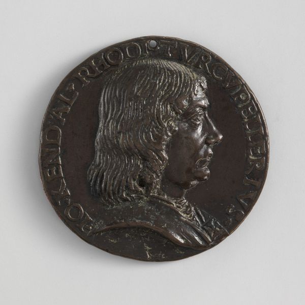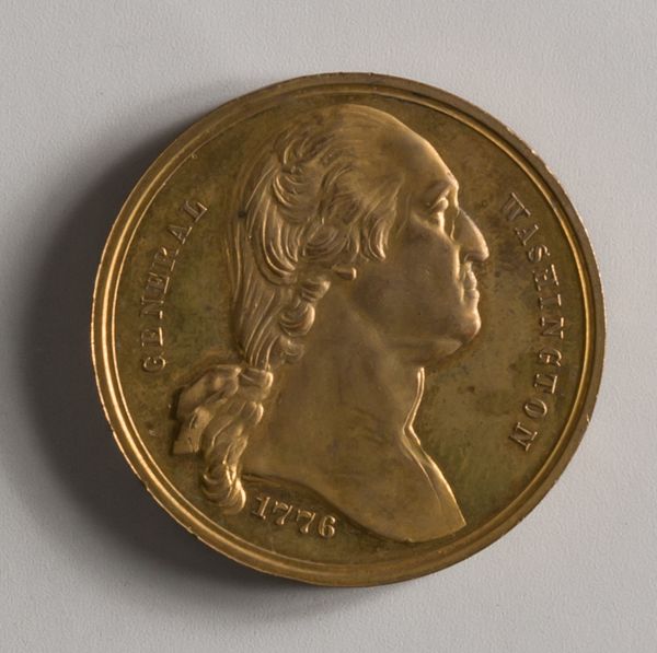 Augustin Dupré designed this bronze medal, now held at the Metropolitan Museum of Art, celebrating Benjamin Franklin. The circular form encloses a relief portrait of Franklin, set against a smooth, uncluttered background. The composition emphasizes the profile, carefully rendered to capture Franklin’s features. The inscription is structured around the perimeter and it punctuates the edge and directs the viewer's eye in a continuous loop, framing the central image. The choice of bronze lends the piece a sense of gravitas, but more importantly, permanence. The scale invites close examination, rewarding viewers with an appreciation for the fine detail. Dupré’s formal decisions elevate this token into a symbol of enduring legacy. Its tactile qualities and the interplay between text and image reinforce a sense of historical weight. This is not merely a commemorative object; it's a carefully structured embodiment of memory.