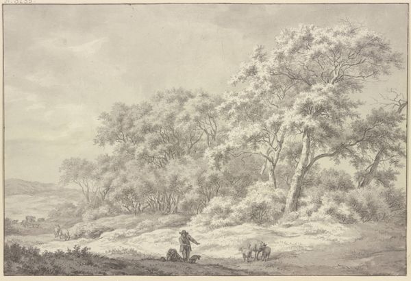 Franciscus Andreas Milatz created this drawing, “Am Waldesrand zwei ruhende Bauern bei einem Hühnerkorb”, at the turn of the 19th century in Germany. It depicts two peasants resting by a chicken coop at the edge of the forest. The artist's depiction of rural life reflects a broader trend in European art towards romanticizing the countryside. As industrialization progressed, artists and intellectuals often looked to the countryside as a source of authenticity, simplicity, and moral virtue. The scene also presents some questions. The role of institutions such as art academies in shaping artistic tastes and promoting certain subjects over others is something to keep in mind. Was Milatz, who had formal training, responding to a market demand for idealized scenes of rural life? How did his artistic choices reflect or challenge prevailing social hierarchies? Art historians can explore questions like these by studying the artist's biography, examining contemporary critical reviews, and analyzing the broader socio-economic context in which the artwork was produced and consumed.