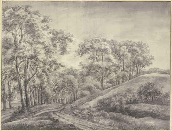 Editor: Here we have Simon de Vlieger's "Bosgezicht," a pencil drawing created sometime between 1610 and 1653. I'm struck by its density; it feels like stepping into a hushed, cool forest interior. What do you see in this piece, considering its historical moment? Curator: It's fascinating to consider this work in the context of the Dutch Golden Age and its relationship with nature. We see an intense, almost scientific, observation of the natural world. But what does it mean to *represent* the forest in a society increasingly shaped by commerce and colonial expansion? Where do we position this idealized view in a society rapidly changing its relationship with natural resources? Editor: So you're suggesting the drawing isn't just a neutral depiction? Curator: Precisely! Think about the forests themselves. Were they truly "empty" landscapes as depicted, or were they spaces utilized and inhabited by rural communities with their own complex systems of knowledge and resource management? This image implicitly promotes a vision of land ripe for "discovery" and exploitation. Who controls its image controls its narrative. What about the under-represented communities? Editor: That completely reframes how I see the drawing! I was focused on the artistic skill, but you’re right, it's presenting a particular point of view. What strikes you most about it now, considering that perspective? Curator: The quietness becomes unsettling. It silences other voices, other histories connected to the land. How can we make these voices audible and explore those intersections through works like this? Editor: This has given me a lot to think about. I'll never look at landscape art the same way again! Curator: Nor will I!