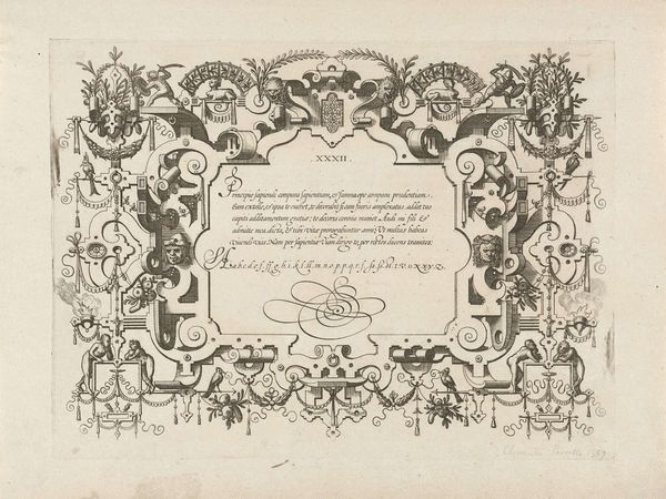 This print, made in 1786 by an anonymous artist, commemorates the swearing-in of the Utrecht civic guard. Immediately, the symmetrical composition and the stark contrast between the lettering and the background draws the eye. The design, encased within a rectangular frame, features two prominent circular medals suspended above a decorative banner, lending a sense of formal order. The piece invites a semiotic reading. The medals depict scenes related to civic duty and governance, acting as signs that convey layers of cultural and historical meaning, particularly in relation to the political structures of the time. The arrangement of text and image creates a visual hierarchy, subtly emphasizing the values of governance and civic responsibility. The overall structure of the print embodies a dual function. Aesthetically, the print serves as a commemorative object, but formally, it acts as a vehicle for propagating the values of the ruling government. The combination of image and text invites the viewer to interpret the symbolic meaning of the oath-taking ceremony within the broader context of 18th-century Utrecht society.