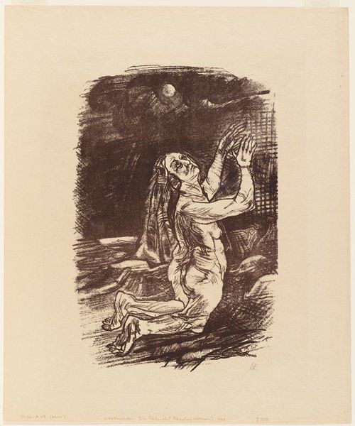 Editor: Here we have Emile Bernard’s "La Crucifixion," a woodcut print dating from around 1890 to 1894. It’s striking – the stark black lines against the light paper create a really dramatic effect, almost oppressive. How do you interpret this work? Curator: This print exists within a fascinating intersection of faith, art, and social commentary. Considering Bernard's later involvement with religious artistic communities, the raw, almost brutal lines of the woodcut seem to reflect a grappling with traditional narratives of suffering and redemption. Think about the Symbolist movement occurring then – a move toward conveying emotion and experience, challenging academic constraints, engaging spiritual and psychological topics. This crucifixion isn’t just a biblical scene, but an expression of something deeper. Editor: It definitely feels less about glorifying and more about portraying suffering, like the pain and struggle are the point. Curator: Precisely. And consider the medium – woodcut – often associated with folk art and religious imagery accessible to a wider audience. What do you think the artist's intent might have been in choosing that, instead of something maybe perceived as more high art? Editor: Perhaps he wanted to bring a message to the masses, a kind of social commentary on the disparities between the teachings of Christ and the realities of society? The common person's art for a common-person focused gospel. Curator: Exactly! And think about the implications: who is truly crucified, both literally and figuratively? Bernard's "Crucifixion" invites us to critically engage with faith and its place within the sociopolitical landscape of its time and of ours. Editor: I never thought about it like that before – it’s so much more than just a religious scene. Curator: It really is a powerful and multifaceted work. Art provides us the platform to challenge accepted traditions, prompting critical dialogues. Editor: I'm walking away with an all new view. Thank you!