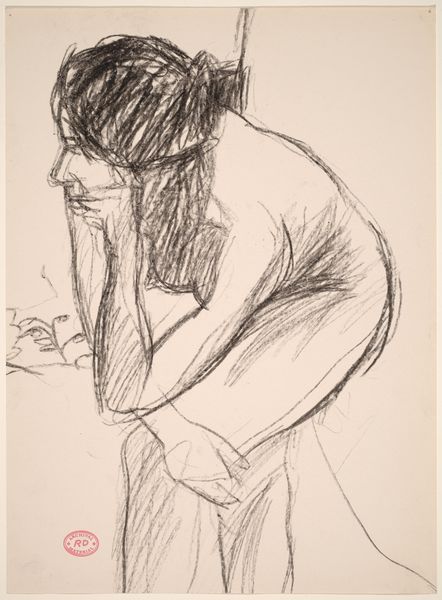 Richard Diebenkorn made this drawing of a seated nude, probably in the 1960s, using charcoal on paper. You can see how the marks are laid down, kind of tentative, always searching, which tells you a lot about how Diebenkorn saw artmaking as a process. Looking closely, you notice the texture created by the charcoal, especially around the stool and the figure's contours. There's a raw, almost unfinished quality to the piece, as if Diebenkorn was more interested in the act of seeing and recording than in creating a polished image. I love the way he uses these scribbly lines to suggest shadow and volume, like near her neck and under her arms. It’s like he's building up the form bit by bit. Diebenkorn made many figurative studies, and the way he balances abstraction and representation reminds me a bit of Matisse. Ultimately, the beauty of this drawing lies in its honesty and the way it invites us to participate in the artist's process of discovery.