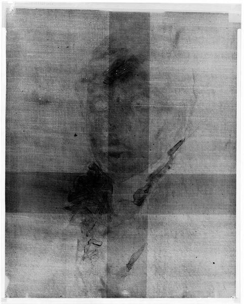 Editor: This is an X-radiograph of "Portrait of a Man 'Ariosto'" by Sebastiano del Piombo, from the Harvard Art Museums. It looks like a ghostly image. What do you see in this piece, looking beyond its surface? Curator: This radiograph unveils the hidden layers of the painting, revealing not just the artist's hand but also the socio-political context influencing artistic creation. Can you see how the changes hint at the artist's response to patronage or censorship? Editor: I see it now, the underpainting suggests a different composition. It’s like a peek behind the curtain of artistic and societal pressures. Curator: Exactly! And remember, the museum's role in preserving and presenting this image also shapes our understanding of art history. Editor: This makes me think differently about the power dynamics embedded in art. Thanks for helping me uncover the context. Curator: My pleasure! Recognizing these influences deepens our appreciation of art's complexities.
