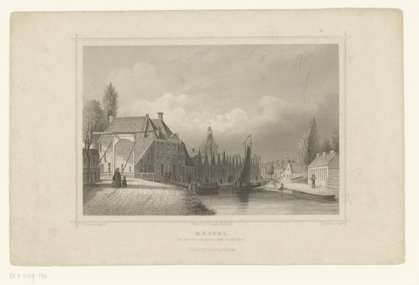 Curator: Welcome. Before us is "Gezicht op de Weerdpoort en de Oude Rijn te Utrecht," an etching crafted in 1863 by Johann Gabriel Friedrich Poppel. The artwork currently resides in the Rijksmuseum's collection. Editor: It’s rather lovely, a quiet and peaceful cityscape. The delicate etching really captures the stillness of the water and the sense of a bustling, yet orderly, port city. It evokes a specific moment, doesn’t it? Curator: Indeed. Poppel’s detailed rendering provides insight into Utrecht’s urban fabric and its reliance on waterways for trade and transport in the mid-19th century. Consider how the Weerdpoort, a historic gate, punctuates the skyline. These features served critical regulatory functions, particularly concerning commercial activity. Editor: I see what you mean. It is as if Poppel were showing off how this control allows an economy to thrive in a constrained urban area, even with structures that interrupt or even block traffic. It highlights issues of privilege and who gets to use those resources, something that continues today. Curator: That's an interesting point. We see in this work how power manifests through infrastructure. Who decides what goes where? Whose voices are amplified through this built environment? It speaks volumes about civic priorities during that era. Editor: Exactly! What might appear a pleasant landscape, hides tensions regarding access, governance, and social hierarchies deeply woven into urban spaces. The etching highlights an environmental history and prompts questions about what the unchecked growth might look like now. Curator: By situating ourselves in the work, and by using what we learn to shape a present that allows access to opportunity. A crucial perspective. Thank you for sharing your insight. Editor: Of course. It is in discussing these elements of power that our historical understanding and social awareness create a powerful perspective of how this art serves the world.