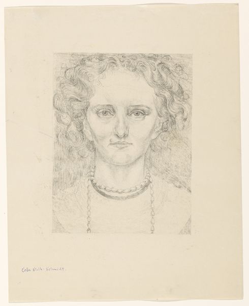 Editor: This is "Portrait of an Unknown Woman," a 1931 pencil and graphite drawing by Simon Moulijn, currently housed at the Rijksmuseum. The texture created by the pencil strokes gives it such an intense and almost brooding feel. What stands out to you in this piece? Curator: The composition immediately arrests the eye. Notice the deliberate framing – how the darkness surrounding the figure pushes her forward, focusing our attention on her face. Moulijn's masterful use of light and shadow is not merely representational; it constructs the very mood you perceive. Editor: The lighting definitely sets a tone. What do you make of the woman’s gaze? It’s quite direct. Curator: Precisely. The direct gaze is critical. It challenges the viewer, denying them passive observation. It also emphasizes a linear quality—how the light from above cascades onto her face, contrasting with the flat planes along the jaw. It is these elements that draw our attention not just to *what* is represented, but *how* it is presented. The interplay is a very careful arrangement of positive and negative space. It gives definition and contributes to her direct engagement with the viewer. Editor: I see what you mean. So, rather than thinking about who she might be, you're drawn to *how* the image is constructed to create a feeling? Curator: Exactly. It's not about narrative, but about form. What meaning derives from its materiality? How are line, shade, and composition communicating here? Consider what shifts within the portrait once we focus on that instead of its potential symbolism, and we can begin to grasp the pure genius. Editor: That makes a lot of sense. Thanks for sharing that perspective! Curator: My pleasure. It’s always enlightening to analyze how formal qualities dictate meaning and reception.