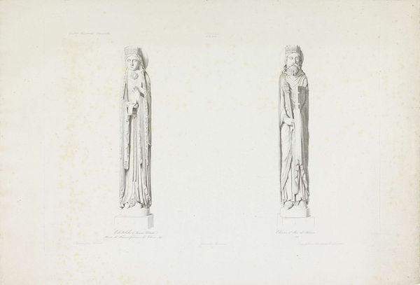 Curator: Here we have a sketch titled "Altemps Muse and Diana the Huntress," an anonymous work held within the Harvard Art Museums. Editor: It strikes me as tentative, a preliminary exploration of form. The stark contrast between the figures and the negative space amplifies this quality. Curator: Observe the artist's meticulous rendering of drapery, how the lines define volume and create a sense of movement. Note the contrapposto stance, how it animates the figures. Editor: And the starkness of the graphite; almost utilitarian in its delivery. It's a direct record of process, isn't it, the artist's hand at work refining their vision. Curator: Indeed, it reveals a deep engagement with classical ideals, a striving for perfect proportion and idealized beauty. One sees the influence of ancient sculpture. Editor: Yes, but the anonymity, the lack of finish, situates this work within the realm of study, a document of artistic labor rather than a finished object of veneration. Curator: A compelling intersection of classical form and the materiality of artistic practice. Editor: Precisely; a tangible record of the artist's encounter with classical ideals.