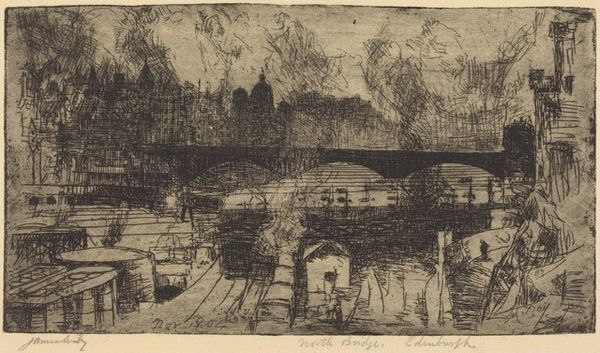 Lovis Corinth’s print, "At the Zoo", looks like it was made with a frenzy of etched lines. It feels like he attacked the plate with his needle, digging in, creating a dark, moody scene. Look at the lower part of the image, where the water is. Notice how the etched lines aren’t just marks but they give real texture, a sense of depth, and the movement of the water. You can almost hear the water sloshing, and sense the damp air. It’s as if Corinth is saying, 'this isn't just an image, but a whole environment, loaded with feelings.' This reminds me a little of some of James Ensor's etchings, where the everyday becomes something a bit spooky and raw. It is like this work is a reminder that even simple scenes can have hidden layers, a whole load of emotion, waiting to be scratched out and revealed.