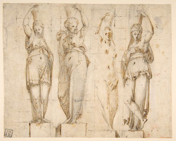 Cherubino Alberti created this drawing, "Studies of a Nude Female Statue (Venus) and Head of a Mature Bearded Man," using pen and brown ink in Italy sometime in the late 16th century. Here, Alberti engages with classical ideals during the rise of academies and art theory. The drawing showcases a nude female statue, likely Venus, alongside a bearded man. These “academy studies” were exercises, training artists in proper form. This was a period when art academies, like the Accademia di San Luca in Rome, solidified their influence, prescribing artistic standards and elevating the status of artists. Alberti's drawing reflects the cultural authority of classical antiquity and its role in shaping artistic norms. For art historians, drawings like this offer valuable insight into the pedagogical practices and institutional frameworks that governed artistic production during the late Renaissance. By studying these works, alongside archival records and theoretical treatises, we can gain a richer understanding of the social forces that shaped artistic expression.