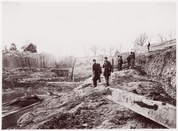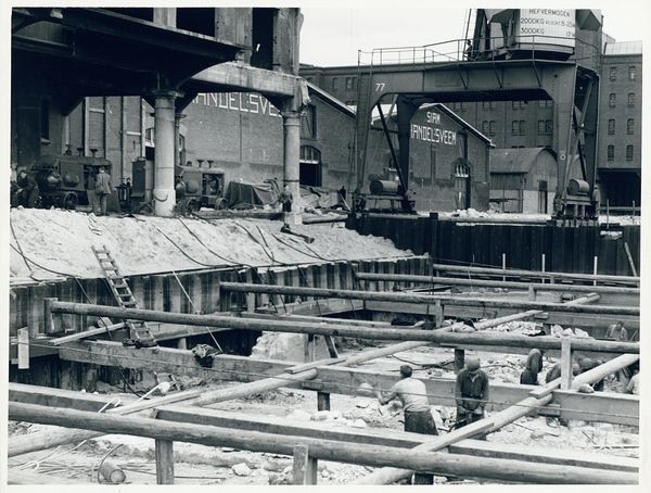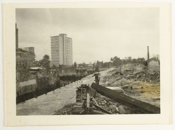 This black and white photograph, "Nieuwe Huizen", now at the Rijksmuseum, captures a moment of rebuilding, or maybe just building, it’s hard to tell sometimes isn’t it? There’s a sort of starkness to the image. It feels really process oriented, a document of labor, with men and trucks scattered across a raw, torn-up landscape, but then again, it’s quite beautiful in it’s own way. I am really drawn to the piles of rubble in the foreground. The light and shadow create a texture, a visual language of destruction and reconstruction. The diagonal lines of their shovels, cutting into the earth is striking. It makes me think about how the smallest gesture can alter the whole composition, the narrative. It reminds me of some of the WPA photography from the 30s, but with a slightly different vibe, perhaps a more optimistic one. Anyway, it's a good reminder that art, like life, is always in progress, always under construction.