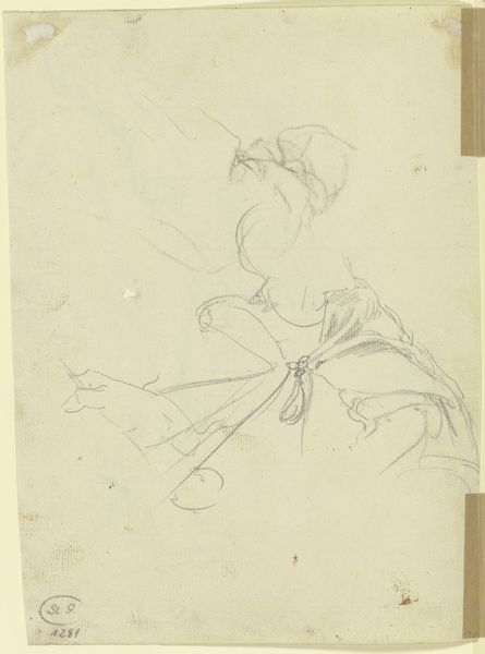 Curator: Well, isn't this delightful. Like stumbling upon a private thought, almost. Editor: Precisely! It’s a momentary whisper of fleeting movements; it captures an immediacy that's refreshing, don't you think? Curator: We are looking at “Studieblad met danseressen,” a sketch by Isaac Israels, dating probably from around 1915 to 1925. The Rijksmuseum holds this work which offers a glimpse into the artist’s creative process using just pencil on paper. Editor: Pencil and paper... so simple, but the feeling of lightness is so palpable! You almost hear the rustle of costumes and see the faint glimmer of sweat, an unvarnished view that’s so intimate. The loose strokes! Curator: Note the composition: two figures dominate the page, each rendered with swift, confident strokes. The artist emphasizes line over volume. See how Israels captures the dynamism of the dancers using suggestion. Negative space is really used strategically to create a sense of movement. Editor: I get such a private glimpse. The dancer on top looks posed. The way her body extends reminds me of Degas and those behind-the-scenes moments! Almost voyeuristic! It feels both ephemeral and raw. Curator: In line with Israels’ impressionistic inclinations. He isn’t trying to give a perfect representation of bodies. The sketch prioritizes the essence of the fleeting moments. A representation achieved through the materiality of pencil on paper: the immediacy, the tentative lines and erasures... They invite contemplation. Editor: True! What's erased reveals almost more than what is there on the surface. But for me, it’s the bottom dancer that intrigues me the most! Something tragic about her, laying there with her sombrero. Did she miss a step? Curator: Intriguing to imagine narratives... Beyond that, structurally, she serves to anchor the composition with an implied sense of gravity. This grounding stabilizes the dance sequence and gives rhythm. It creates visual harmony. Editor: Mmm… well, whatever it means, this drawing feels like a secret glimpse into the artistic mind, full of motion. A delightful pause, wouldn't you say? Curator: Yes. Definitely a very dynamic study of figures suspended in an interesting interplay.