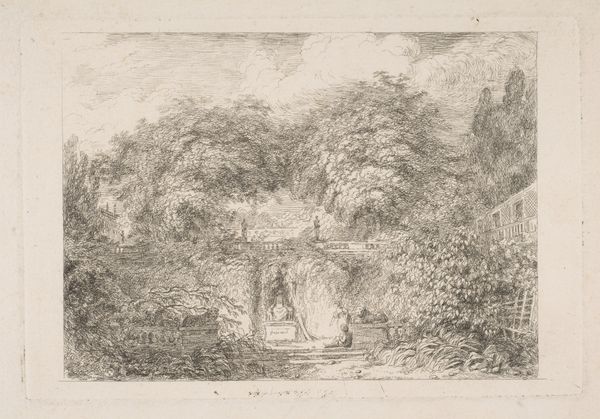 Pieter Pietersz. Barbiers made this landscape with a little waterfall under two big trees using pen and brush, with grey ink on paper. Look closely, and you’ll see how Barbier's choice of materials profoundly affects the work. The fluidity of ink allowed him to create delicate lines and subtle gradations, capturing the natural beauty and light of the Dutch countryside. The texture of the paper also plays a role; it's absorbent surface enabling the ink to bleed slightly, lending a softness to the image. Barbiers’s skill lies not only in his technical ability but also in his engagement with the artistic conventions of his time. While landscape painting was becoming increasingly popular, Barbier's work also has something of the quality of a study – almost like a design for a more ambitious work. The amount of work involved in making this kind of drawing is considerable, pointing to the importance of these skills and traditions. Ultimately, the meaning of this artwork is found in how these materials come together in skilled hands, and how the creative process gives shape to cultural significance.