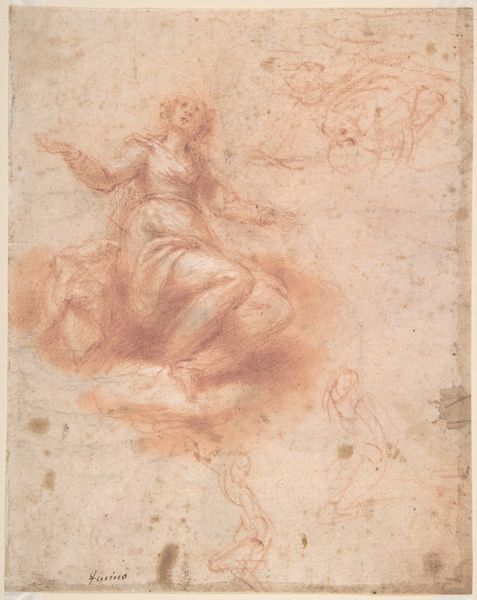 Cornelis Schut created this red chalk drawing, *Two Studies of a Flying Putto*, sometime before his death in 1655. Schut was a leading figure in Antwerp’s artistic scene during the Baroque period. At first glance, the sketch appears to be a simple study of cherubic figures. However, its creation occurred during a time of intense religious and political conflict. The visual arts were often employed as tools for ideological expression. In this context, the putto, or cherub, served as more than just a decorative element. Rooted in both classical and Christian traditions, the cherub became a potent symbol for divine love, salvation, and even political power. Schut was known for his contributions to religious and allegorical works, where putti were frequently used to convey complex theological and philosophical concepts. These figures, suspended in air, invite us to meditate on the intersection of the earthly and the divine, reflecting the era’s deep spiritual preoccupations. While seemingly weightless and free, the putti are also laden with the weight of symbolic meaning.
