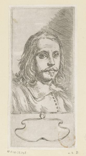 This is Jan van Ossenbeeck's self-portrait with a hat, created around the mid-17th century using etching techniques. The composition, dominated by fine lines, creates a detailed yet intimate portrayal. Ossenbeeck masterfully uses the etching needle to define the texture of his hair, the contours of his face, and the dramatic shadow under the brim of his hat. The cross-hatching in the background not only adds depth but also serves as a structural element, framing the artist's face and drawing our eye to his direct gaze. Consider how this self-representation reflects the period’s interest in identity and self-awareness. By choosing etching—a medium allowing for detailed and reproducible images—Ossenbeeck engages with the broader cultural and philosophical currents that questioned fixed meanings and embraced new ways of thinking about representation. Notice, finally, how the artist's controlled use of line work enables a reflection on the nature of portraiture itself, highlighting the intricate dance between the artist, the medium, and the viewer.