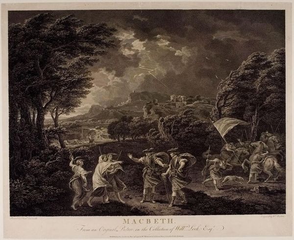 Curator: This is James Fittler's "Summer," a pastoral scene rendered with meticulous detail. The composition immediately strikes me as ordered; a clear foreground, middle ground, and background create a sense of depth and classical harmony. Editor: I agree about the depth, but I see a manufactured nostalgia for rural life that ignores the realities of class and labor. Look at the idealized figures—where is the sweat, the grime of agricultural work? Curator: The artist uses line and shadow to define form and texture; consider the intricate foliage of the central tree. The tonal range is remarkable. Editor: Indeed. Though I can’t ignore the context: idyllic scenes like these often served to romanticize a social hierarchy where leisure was a privilege for the few. Curator: Perhaps, but I find a beauty in the artist's technical skill and careful composition, it reveals an artistic mastery that's timeless. Editor: Maybe. But this image also reveals the power structures inherent in how we represent and value different kinds of labor and lives. Curator: A compelling perspective—it certainly broadens my view of the piece. Editor: And the formal qualities reveal how such views are reinforced.