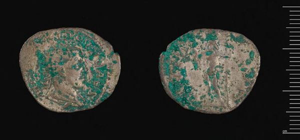 Curator: This mosaic disk, crafted by the Mixtec culture between 1400 and 1500, presents a captivating blend of mythology and historical narrative rendered in ceramic tesserae. What's your immediate impression? Editor: Visually striking! The texture alone grabs me—that fractured mosaic surface has such palpable depth, doesn't it? Almost as if time itself is embedded in the material. The subdued color palette gives it a sort of ghostly feel, but full of figures still. Curator: Yes, let's consider this restrained palette of soft blues, greens, and creams. It results in an incredible dynamic between figuration and ground. It's not just about what's depicted, but the relationship between each tessera, creating pattern, rhythm, and optical intrigue. Editor: Absolutely. But the imagery cannot be dismissed. These meticulously placed shards, they come together to tell such rich, mythic tales! I see representations of human figures, perhaps deities or ancestors, woven into the overall cosmology of their culture. Don't you think that this gives us insights into the Mixtec understanding of time and narrative? Curator: Agreed. Look at the orientation of the men: do these linear demarcations break up the central tableau like acts in a play, with different characters engaged? The lines create rhythm as well. I like the artist's decisions here. It lends structure but not so much that it feels didactic. Editor: This artwork serves as a conduit for cultural memory; it carries potent symbolic weight and perhaps hints at a worldview so unlike our own. Each piece bears the imprint of history and cultural meaning, which offers the contemporary observer a deep insight into ancestral traditions and psychological archetypes that connect us to distant times. Curator: For me, this lies in the overall composition. The circular format is, of course, also crucial. Does it represent continuity? The cosmos? It's a brilliant manipulation of form to express deeper concepts, allowing one to be receptive and explore more complex interpretations. Editor: I'm just left pondering how those artisans intended to imprint such a detailed cosmogram and its narrative in such a unique form. Curator: And the technical sophistication… Truly masterful. This piece allows one to appreciate the complex semiotics that contribute to its effectiveness as a symbolic object.