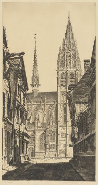 Willem Adrianus Grondhout made this print called ‘Breda’ without any colour, just shades of brown on paper, and I feel like you can really see the process. I love how the etching captures the church under repair, swathed in scaffolding. There's a real tension between the solid permanence of the church and the temporary structures clinging to its side. It's like a metaphor for how we're always building, always changing, even when we think something is fixed. The etched lines are so delicate, creating a surface that feels both gritty and ethereal. It’s almost like the whole scene could lift away in a breeze, which makes the solid church seem even more grounded. The way Grondhout has captured the light is amazing, there's a real sense of atmosphere. You could compare this to Piranesi, who also used etching to depict architecture with a sense of drama and imagination. It makes you think about how artists see cities, not just as places, but as living, breathing things.