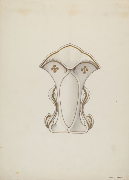Editor: This is Richard Barnett’s “Door Stop,” a watercolor and drawing from around 1939. There’s something so comforting and uncomplicated about it. What captures your eye most in this work? Curator: Oh, isn't it delightful? I love how Barnett renders a very ordinary object—a humble doorstop—with such affection. The repetition of small, teardrop-shaped marks gives the sculpture, and consequently the drawing, a unique texture, almost like scales. The uniformity is captivating, but I keep wondering what the original object looks like. Did he simply find a peculiar sculpture, or did he imbue a common form with added significance? Editor: That’s interesting, I hadn’t considered that. What's your read on his choice to depict it in watercolor rather than, say, trying to mimic the texture with oil? Curator: Watercolor is immediate, transparent... almost a reverie on paper. Oil might give too much weight, too much... *presence*. Watercolor lends it that dreamy, slightly melancholic air. You almost expect it to dissolve if you touch it. And you know, thinking about the '30s, there's a quiet stoicism here, a finding of beauty in the everyday. It's touching, really. Don't you think? Editor: Absolutely, it’s charming. The details are incredibly engaging, the repetitive marks almost meditative. Curator: Yes! It’s as if he’s inviting us to pause, consider, appreciate the things we often overlook. I shall never look at a doorstop the same way again. Editor: Me neither! It's amazing how much thought can be contained within a simple image.