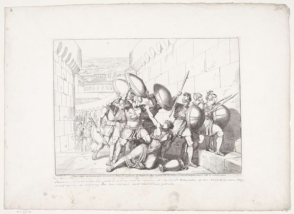 Charles Grignion I created "Lismahago Outside the Inn at Durham" around 1793 as an illustration for Tobias Smollett's novel. The composition teeters on the edge of chaos, yet it’s meticulously organized to convey a scene brimming with social commentary. Grignion uses line and form to animate the characters and architecture. Note the contrasting postures and expressions: Lismahago is aggressively rigid, juxtaposed against the disarray of figures around him. The artist plays with perspective, compressing space to intensify the interaction between the characters and their environment. The etching's real genius lies in how it captures a moment of social friction. Through Grignion’s precise lines, we observe the dynamics between the individual and the crowd, order and disorder. The linear quality of the etching allows Grignion to subtly destabilize any fixed reading, inviting viewers to question what this scene is ultimately about.