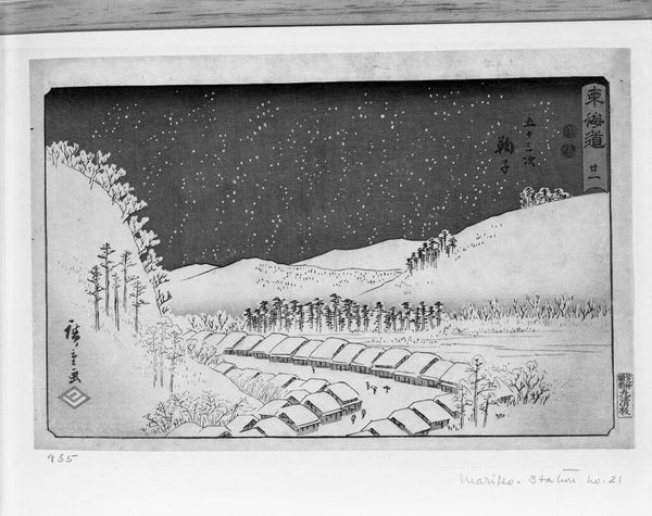 Curator: Here we have Martin Mower's "Looking West from Kicking Horse Lake," a landscape rendered in monochrome wash. Editor: My first impression is the stark contrast between the textured foreground and the distant mountains. It feels monumental yet subdued. Curator: The artist's use of wash skillfully models the forms, creating a sense of depth and atmospheric perspective. The interplay of light and shadow is quite effective, wouldn't you agree? Editor: Absolutely, and I'm curious about the paper choice. It looks like a coarse laid paper, likely chosen to enhance the tactile quality of the wash and evoke the ruggedness of the landscape itself. Curator: An insightful point. It's the skillful manipulation of tone and form that truly resonates with me. Editor: I find myself considering the physical act of creating such detail by hand, in a time far removed from digital imaging. A lot of labor went into this. Curator: It certainly lends a unique resonance, doesn't it? Editor: Indeed. The intersection of process and representation is really compelling.