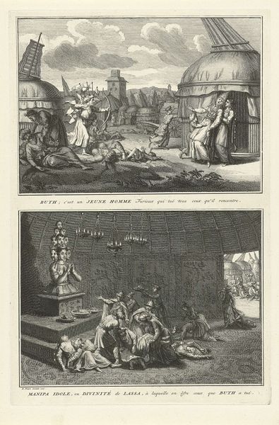 Hermanus Numan created this print, "De man met de bontemuts", sometime in the late 18th century, a period rife with social and political upheaval. Here, the dominant symbol is the 'bontemuts' – a fur cap – worn by the central figure, acting as a symbol of disguise and hidden identity. This motif echoes through history, resurfacing in commedia dell'arte characters and carnival traditions, where the mask and costume allow for temporary inversions of social order and explorations of the subconscious self. One can trace its evolution to the fool's cap, a marker of the outsider. Consider the act of unveiling, or unmasking, a recurring theme in art and literature, representing the stripping away of illusion to reveal underlying truths. This print shows the moment of revelation. The crowd has gathered and exposed the main character who they thought was dead. The collective hysteria and the mob mentality are powerful forces, engaging viewers on a deep, subconscious level. This scene reminds us of how fear and superstition can drive human actions. The image's power lies in its depiction of a non-linear, cyclical progression, where symbols resurface, evolve, and take on new meanings across time.