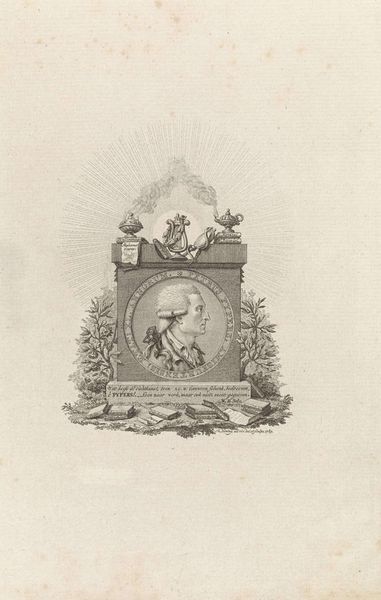 Editor: This is Joseph de Longueil's "Illustration: Madonna with Christ Child carrying a Cross." It's a delicate print. The composition seems to play with the juxtaposition of life and death. What are your observations? Curator: The intricate circular frame, adorned with both symbols of triumph and mortality, immediately directs the eye. Note the contrasting textures: the smooth skin of the figures versus the rough, almost baroque rendering of the skull. What effect does this textural dichotomy achieve? Editor: It creates a strong visual tension, highlighting the ephemeral nature of life against the backdrop of faith. I see that now. Thanks! Curator: Precisely. Longueil masterfully employs formal elements to underscore the central themes.