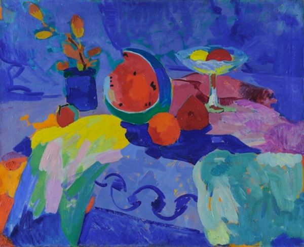 Mariam Aslamazian made this painting of Armenian fruits with a generous, vibrant application of paint. Look at how she builds up each form with individual strokes of colour, almost like mosaic tiles, giving the painting a tactile quality. The texture of the paint is really something here, isn't it? The brushstrokes are so visible, especially on the surfaces of the fruit. The surface is built up with layers that capture the light, making the colours sing. Take the red pomegranates, for example. The way she layers reds, pinks, and even a touch of purple really brings out the juiciness and roundness of the fruit. It's like she's not just painting what she sees, but how it feels to hold that fruit in your hand. Aslamazian shares a similar spirit to folk artists like Horace Pippin, with a shared love for colour and a commitment to depicting the world in a way that is both honest and deeply personal. You get the sense that art is an ongoing conversation between artists across time, each building on the ideas of those who came before, and isn't that just delicious?