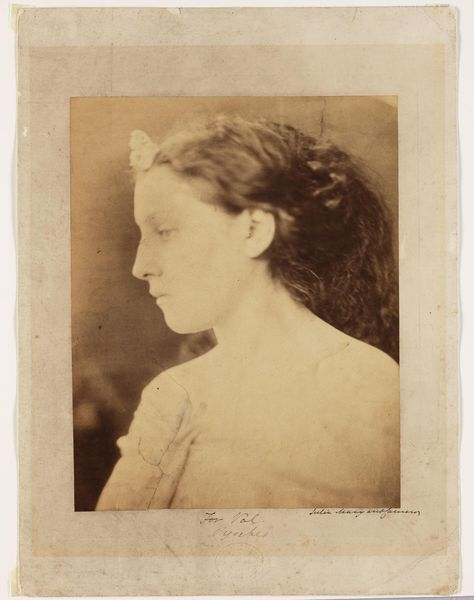 This photograph, "[Mary Hillier]," was taken by Julia Margaret Cameron, a British photographer working in the mid-19th century. During this period, women artists navigated a complex social landscape, often confined to specific genres. Cameron’s portraits challenged the conventional, polished images of the time. There is a soft focus on Mary Hillier's face. She is in profile, with the fabric draped around her head. We see her youth, and something melancholic, in her gaze. Cameron often blurred the lines between art and life, using friends and family as models, and imbuing her portraits with a sense of intimacy. By infusing emotional depth into her portraits, Cameron elevated photography to the realm of fine art. The photograph serves as a reminder of the complex interplay between gender, artistic expression, and the evolving role of women in the Victorian era.