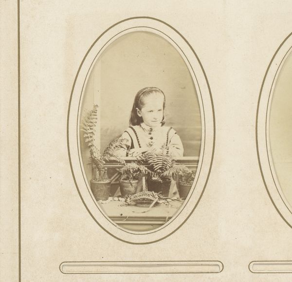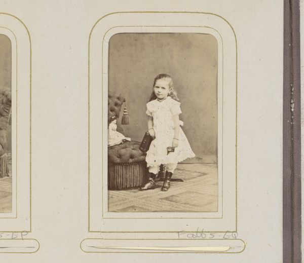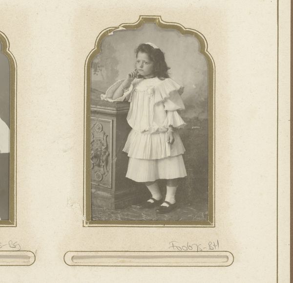 Joseph Maes created this small portrait of two girls, one seated on a chair, sometime in the late 19th century. The sepia tones and formal composition give the image a sense of timelessness and introspection. The photograph is structured around the contrast between the seated figure and the standing one, creating a play of levels and perspectives. The composition, with the two girls closely positioned, suggests a bond, reinforced by the standing girl's hand gently placed on the other’s shoulder. This arrangement subtly engages with semiotic codes of kinship and support. The limited tonal range focuses attention on the girls' expressions and attire, reflecting the social values and constraints of their time. The contrast between light and shadow, typical of early photographic processes, adds depth and a sense of emotional reserve. This stylistic approach is not just aesthetic but also serves as a cultural artifact, inviting us to consider the interplay of representation, identity, and societal expectations. The photograph remains an open text, subject to continuous interpretation.