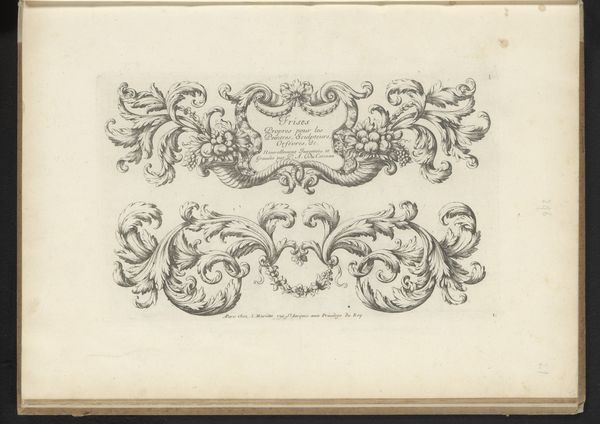 Editor: This engraving, "Design for a Cartouche," comes to us from Jeremias Wachsmuth, sometime between 1745 and 1755. All those swirling lines—it reminds me of iced wedding cakes. A sort of visual sugar rush. What am I meant to be seeing in it, beyond all that delectable detail? Curator: A cartouche! Isn't that a fabulous word? In essence, it’s a decorative frame, usually oval or oblong, intended to hold an inscription, a coat of arms, or some other emblem of importance. Think of it as the Baroque era’s version of… a bumper sticker, perhaps, but infinitely more elegant! Editor: So it’s less about the object itself and more about what you would put inside? Curator: Precisely! It's a space for claiming identity, declaring allegiance, or simply adding a flourish. Wachsmuth’s design is particularly interesting because it's so over-the-top, it becomes this explosion of pure form, a celebration of curves and flourishes for their own sake. Think of it not just as ornamentation, but also an architecture for the eye. Does that resonate for you? Editor: Absolutely. I see it now—less sugary sweetness, more about structural, albeit flamboyant, possibility. Kind of changes the game, actually. Curator: Doesn't it? Art, at its best, prompts that sort of playful shifting of perspective. What seemed like surface now reveals depth, and the invitation is always to dive in. Editor: I’ll never look at another iced cake the same way. Thank you!