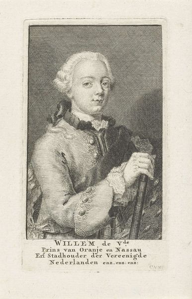 Curator: Before us is a print entitled "Portret van Giovanni Domenico Tiepolo," created sometime between 1773 and 1774. Editor: It has a rather somber tone, doesn’t it? The limited range of tones—essentially a monochrome palette—lends it an air of quiet introspection, maybe even a touch of melancholy. Curator: Indeed. As a print, specifically an engraving, the work participates in a broader culture of image dissemination in the 18th century, a period where prints became vital for circulating knowledge and promoting individuals, shaping their public personas. Editor: Looking closely, you can really see the incredible density of the lines making up the image. Notice how Tiepolo modulated the cross-hatching to create form and volume. It's quite remarkable the amount of detail achieved with such limited means. Curator: It's fascinating to consider what this image signifies. Was it meant for public consumption, part of a series perhaps, or something more personal, a gift exchanged amongst family or colleagues? Editor: Those carefully rendered textures – the almost lace-like frill on his collar and the softness of his wig – speak to the sitter's status, though rendered with a controlled elegance, not overtly ostentatious. It’s like he’s inviting you to read the qualities of this persona without announcing them. Curator: Yes, portraits in this era were very much statements about status and the social function of the sitter. This one suggests that Domenico wanted to emphasize a professional self rather than aristocratic affiliation, hinting maybe about family relations in Venice artistic circles at the time. Editor: When you look at it formally, however, I think the genius lies in the modulation of light and shadow. It captures the essence of Baroque drama while maintaining a sense of clarity and restraint appropriate for a portrait. Curator: So, by seeing the image as both aesthetic object and a document of its time we can engage with it more completely. Editor: It definitely enriches my appreciation for this finely rendered image.