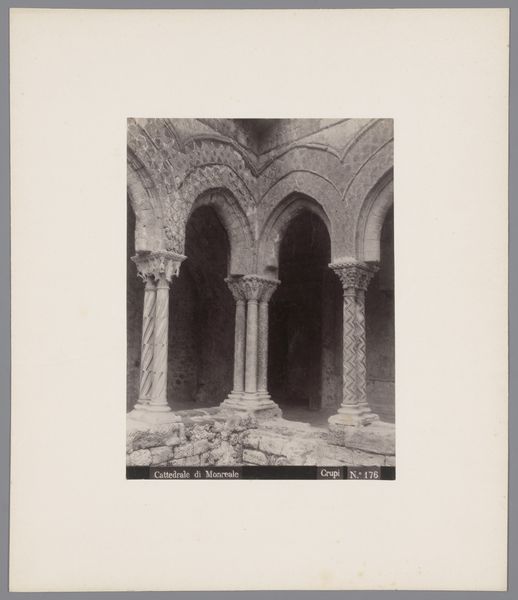 Editor: So this is a photograph by Roberto Rive, titled "Kapiteel in het klooster van Monreale," placing it somewhere between 1860 and 1889. It's a gelatin-silver print showing the capital of a column. I'm struck by the level of detail captured in the carvings. What can you tell me about it? Curator: Well, focusing on the materiality, the use of gelatin-silver allows for a remarkable precision. Rive isn’t just recording an architectural detail; he's documenting a site of labor and cultural exchange. Consider the capital itself - those carvings aren't merely decorative. How do they reflect the means by which such structures were constructed and, in turn, the social relations that governed those production methods? Editor: That’s interesting. I hadn’t considered the labour aspect. Are you saying the style reflects specific social classes or production techniques? Curator: Precisely. Look at the photograph’s texture, its aging and silvering. That reveals its history of consumption and exchange. Think about where Rive was likely selling these prints - who were the consumers of such images? They would’ve largely been the wealthy Europeans who saw in these depictions a certain timeless and classical value, an assertion of power. The monastery speaks to centuries of skilled artisans enacting elaborate instructions for largely wealthy patrons. Editor: So, you're suggesting this photograph becomes a commodity, reinforcing existing power structures through its documentation and distribution? Curator: Exactly. It is an aesthetic object, certainly. But, more fundamentally, it's the product of, and contributor to, an economic system. It prompts questions about who gets to preserve and consume history, and at whose expense was this constructed. The aesthetic and the material, here, cannot be separated. Editor: I never thought about it like that, that’s a totally different approach than what I had initially considered! Now, I see this piece as more of a document of those systems and labors. Thanks for sharing this perspective.