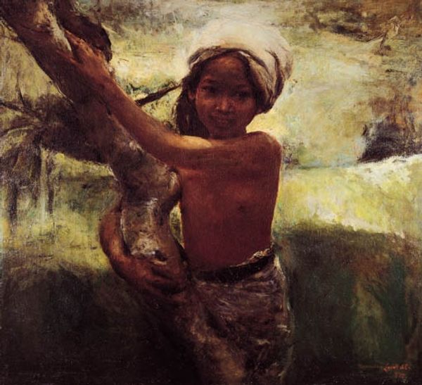 Arkhyp Kuindzhi painted this "Sunset" with oil on canvas sometime in the late 19th century, capturing a figure bathed in the warm, fiery hues of dusk. Notice how the composition centers on the lone woman, grounding the artwork in a human element. The sky, rendered in strokes of blue and soft white, meets an earthy foreground in a powerful horizontal division. Kuindzhi masterfully uses color to evoke mood, the vibrant reds and oranges creating a dreamlike effect. The figure, slightly abstracted, stands in silent communion with the landscape. This resonates with structuralist ideas about art's ability to connect viewers with a deeper understanding of the world through symbolic visual language. The sunset, a universal signifier of closure and transition, prompts us to consider themes of change and the cyclical nature of life. This is more than just a landscape. It is a meditation on the passage of time, rendered through Kuindzhi's distinct formal choices.