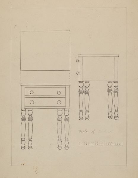 This is a drawing of a sewing table, made anonymously, and we don’t know when. The process is on full display here, in thin, insistent lines, almost vibrating on the page. The table and its mirror reflection are rendered in a pale brown wash, with details etched in a darker ink. It's like the artist is thinking out loud, letting us into their design process. Look at the legs, the way they taper and flare, and at the mirror, with its simple geometric pattern. Each mark feels deliberate, yet the overall effect is open, exploratory. I get a sense of the artist working slowly, refining and adjusting their ideas as they go. The compartmentalized drawer suggests the care taken in considering the design of everyday objects, the attention to detail that elevates something functional to a thing of beauty. This piece reminds me a little of the drawings of Ree Morton, another artist interested in the intersection of the handmade and the functional. Like Morton, the maker of this drawing invites us to consider art as a form of ongoing conversation and exchange.
