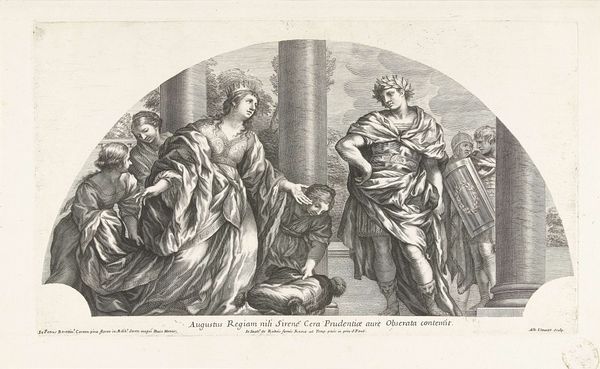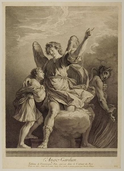 Editor: Here we see "Angelica and Medoro" by Antoine Radigues, a print from the 18th century. It looks like an intimate moment. What can you tell me about how this image functions within its historical context? Curator: This print reproduces a painting by Alessandro Tiarini, highlighting the role of reproductive prints in disseminating art to a wider audience. Consider how the print medium itself, with its inherent reproducibility, democratized access to aristocratic collections. How does this impact our understanding of artistic value in the 18th century? Editor: That's fascinating! So, the print is more than just a copy, it's part of a larger conversation about art and accessibility? Curator: Precisely! The print's existence challenges notions of the "original" and emphasizes the social life of images in shaping taste and cultural knowledge. It makes me wonder how such displays affected the average person. Editor: I see, I hadn't thought about the political dimension of art being more accessible. Thanks! Curator: My pleasure. It’s important to consider how institutions shape our view of art.