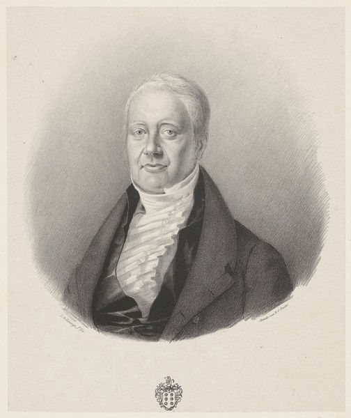 Curator: Looking at this painting by Adriaan de Lelie from 1815, titled "Cornelis Sebille Roos, Amsterdam Art Dealer and Keeper of the Nationale Konst-Gallery in Huis ten Bosch, The Hague," I'm immediately struck by how… unassuming it is. Editor: Yes, unassuming is a good word. The plain background, the subject’s modest attire. There's a definite feeling of restrained respectability. It suggests a world governed by social decorum, and a quiet assertion of middle-class power. Curator: Precisely. Cornelis Sebille Roos was, after all, an influential figure in the Amsterdam art world, as keeper of the National Art Gallery. This image aligns with the Neoclassical movement, valuing clarity, order and reason. The muted tones feel very intentional. Do you perceive any symbolism in his dress? Editor: It's difficult to ignore his very white wig and necktie against his dark coat. Perhaps those colours serve to underline concepts of social station, in his case elevated and of importance. Consider, too, that in his role, Roos would have decided which artworks were displayed, which narratives were privileged. The artist, De Lelie, has visually reinforced Roos' status as a pillar of the cultural establishment. It hints at the exclusive circles that defined artistic taste. Curator: An interesting angle! The artist, through the simplicity of composition, draws the viewer's gaze to Roos' face. This imparts an overall effect of trustworthy directness and respectability, consistent with the period’s aspiration to create an accessible style for the rising bourgeois culture. His facial expression and subtle smirk evoke feelings of competence and assurance. Editor: Yes, he knows his worth. Although this seems to represent a moment of individual accomplishment, it’s more than that. This work presents us a critical reminder of how identity is shaped by power. Even in what appears as a simple portrait, so much of history and social stratification is encoded. Curator: Agreed. And these paintings remind us to always question who gets to be remembered and why. It allows the present-day audience the opportunity to re-interpret the historical norms this portrait seems to convey. Editor: This type of artwork offers us a starting point. There is much work still to be done to excavate deeper and expose inequalities as well as document achievements and make corrections when and where necessary.