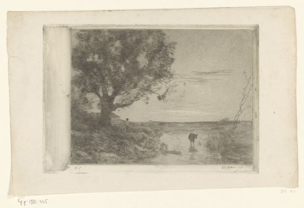 Wijnand Otto Jan Nieuwenkamp’s etching, titled "Zeewind, zuidkust van Java," captures a windswept scene with peculiar mangrove trees dominating the composition. The trees, with their exposed roots, immediately evoke a sense of nature's raw power. Consider the recurring motif of the tree itself. Across cultures, trees often symbolize the connection between the earthly and the divine. Yet, here, the wind-bent forms twist away from the sublime. This distortion hints at the tempestuous forces inherent in nature. In ancient Greece, the serpent was a chthonic symbol, and the roots of these mangrove trees give off a similar sense of subconscious fear and primordial chaos. The artist draws on these subconscious associations to depict the primordial tension between stability and the unpredictable elements.