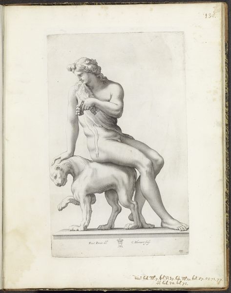 Antoine Alexandre Joseph Cardon created the etching "Europa op de stier," currently held in the Rijksmuseum. The composition immediately draws the eye to Europa and the bull. Notice the contrast between the smooth, flowing lines of Europa's body and the more rugged, textured depiction of the bull. This contrast emphasizes the vulnerability of Europa against the raw power of the animal. Cardon masterfully employs line work to create depth and shadow, giving the figures a sense of three-dimensionality. The bull is not merely a means of transport but a symbol, charged with meaning. It challenges fixed meanings, engaging with new ways of thinking about power and representation. Consider the gazes; Europa looks away, seemingly unconcerned. The bull's gaze is directed at us, the viewers, confronting us. This small etching encapsulates complex themes through its formal elements, inviting ongoing interpretation.