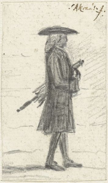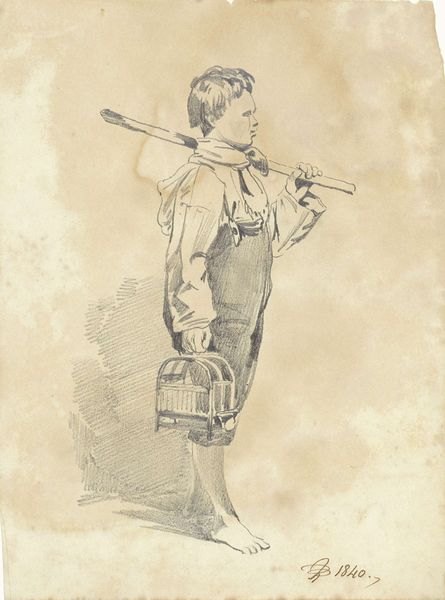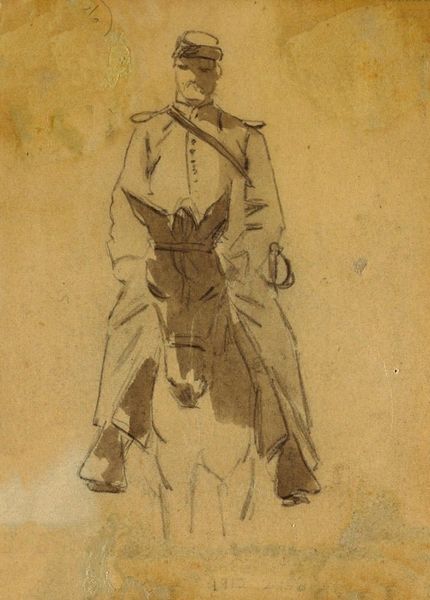 Winslow Homer made this drawing of a soldier with chalk and graphite on paper. The choice of these materials – readily available, relatively inexpensive, and quick to use – speaks to Homer's role as a war correspondent, where capturing a scene rapidly was crucial. The strokes of dark graphite, delineating the soldier's form, are direct and assured, creating a sense of immediacy and movement. The rough paper and visible mark-making invite us to consider the act of drawing itself, bringing us closer to the artist's experience on the field. The contrast between the dark graphite and the white chalk emphasizes the play of light and shadow on the soldier's body, giving him volume and presence. This method of making is interesting because it belongs to both the history of fine art and documentation of important events. Ultimately, Homer encourages us to consider the relationship between art, war, and the human condition.
