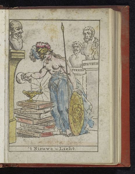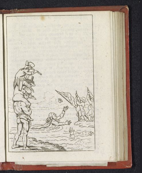 Pieter van Woensel's small print presents a tug-of-war, a raw struggle between two figures embodying distinct ideologies. On one side, a woman adorned in elaborate, feathered headdress and a long, chained skirt. On the other, a draped, semi-nude male figure crowned with laurel. This tug-of-war is not merely a physical contest, but a clash of symbols. The laurel wreath, since antiquity, has signified victory and status, and here, it perhaps symbolizes the power of classical ideals. Juxtapose this against the elaborate, fashionable dress of the woman: a symbol of ephemeral earthly vanities. Such symbolic conflict resonates through history. We see echoes of it in Renaissance allegories, where virtue grapples with vice, each vying for dominion over the soul. This tension, deeply embedded in our collective memory, engages us on a subconscious level. This motif is not linear, but cyclical, reappearing throughout history as a fundamental exploration of humanity's internal conflicts.