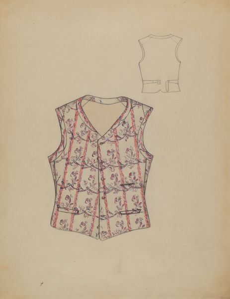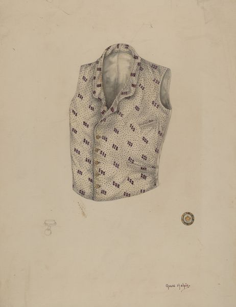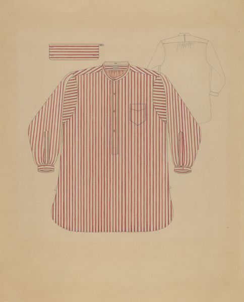 This "Waistcoat" was created by Jean Peszel, sometime between 1855 and 1995. The vertical lines and the way they describe form makes me think about what it means to ‘dress’ an image in vertical lines. The marks are fairly controlled, but not without a kind of handmade touch. The lines wiggle, especially if you look closely at the way the collar stands up. The color is very understated, but really makes me think about that tension between something that is trying to look formal or ‘correct’ but has this undeniable hand in it. Even the way it is presented with that subtle shadow of a human form behind it. I think about Agnes Martin, and I think about the way so many artists work with systems, only to break them. What is order? What is disorder? This piece leaves plenty of room for interpretation and personal projection.