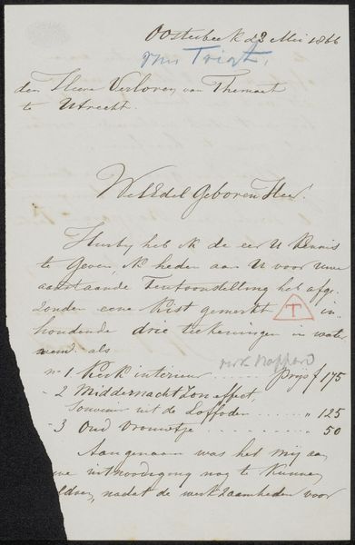 This letter was written by Abraham van Pelt, sometime in the 19th century, to Carel Vosmaer, who was a Dutch art critic and writer. It concerns works to be exhibited. Though seemingly a simple note, this object speaks volumes about the art world of the time. We can ask, what were the social networks that facilitated artistic exchange? How did institutions like exhibitions shape artistic careers? What role did critics play in defining artistic value? Looking closely, the letter's content provides clues. Van Pelt mentions sending paintings for an exhibition. He references specific pieces. These details offer avenues for further research, perhaps through exhibition catalogs or Vosmaer's writings. By reconstructing these networks and institutions, we gain a richer understanding of the social conditions that shaped artistic production in the Netherlands. The historian's task is to piece together this puzzle, revealing the complex web of relationships that gave art its meaning and value.