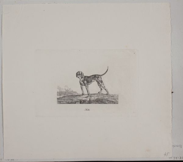 This is Christian David Gebauer's etching of a dog named Stella. The dog, a symbol of loyalty and vigilance, stands prominently in the foreground, her gaze directed away from us, embodying a sense of watchfulness. The dog, an animal intimately linked with humanity, dates back to ancient Egypt and Greece, where they were emblems of fidelity and guardianship, often depicted alongside gods and goddesses. This loyalty transcends mere animal instinct; it reflects a deeper psychological need for companionship and protection. Consider the image of Cerberus, the multi-headed hound guarding the gates of the Underworld. Even in a terrifying context, the dog remains a guardian, albeit of a more forbidding realm. This recurring motif in art and mythology suggests the powerful, subconscious role dogs play in our collective psyche. This engraving evokes a sense of quiet contemplation, drawing us into the enduring connection between humans and animals.