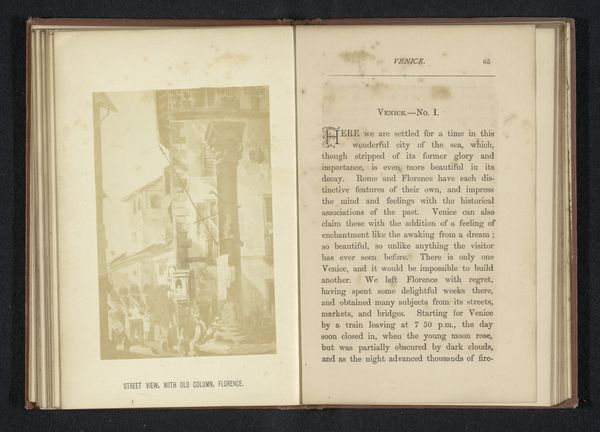 Curator: This gelatin silver print, taken before 1877, captures a Roman cityscape by J. Greer, titled “Old House in the Ghetto, Rome.” Editor: Ghetto…Rome. The light here—or the lack thereof—seems to paint everything with a bit of gloom. What survives isn't only brick and stone, but time itself… and hard times, surely. Curator: Precisely. Look closely at the architectural forms, the way Greer has utilized the tonal range of the gelatin silver process. The composition is a study in contrasts, juxtaposing shadow with fragmented areas of muted light. The emphasis seems to be on the structure’s geometrical planes—its cubic presence—as if echoing Renaissance formalism, perhaps? Editor: That’s academic! I reckon Greer wasn't concerned with echoing Renaissance anything, save maybe echoing its capacity for misery and light. Check out how these blocks lean, they fight gravity, even seem on the verge of collapse. Doesn’t the structure hint at a history of social injustice, marginalization? Curator: Certainly, the subject evokes social realities. The 'ghetto' itself speaks to a complex history, spatially and politically defining societal constraints. Editor: "Complex"…that’s one way to describe oppression. I’m caught between the physical decay and this photographer's impulse to—if only for a moment—memorialize a people… even in distress. Did he manage to portray these stones as a symbol of resistance, or a sign of abandonment? Maybe both… Curator: He might have meant to show the objective reality, capturing not just a structure but the material and social forces it embodies… an architectural embodiment, if you will. Editor: That, I can’t refute. This image echoes much of the story and feelings about urban plight in any time and location; that it survives still tucked away inside an old book is quite profound in its own way, dontcha think? Curator: Indeed, an astute remark. It bridges past and present concerns—art imitating life. Editor: Yep, stones may crumble, but feelings last… in art.